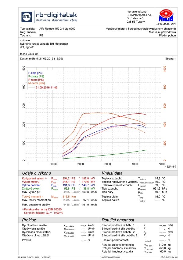 Chiptuning Alfa Romeo 159 2,4JTDm 20V 200PS úprava na 254PS
