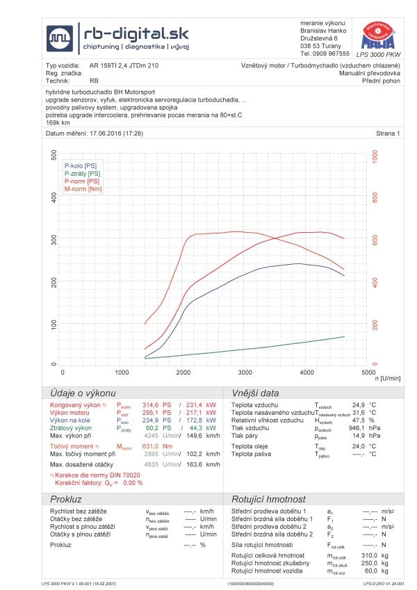 - Výkon po úprave :       631NM a 314PS