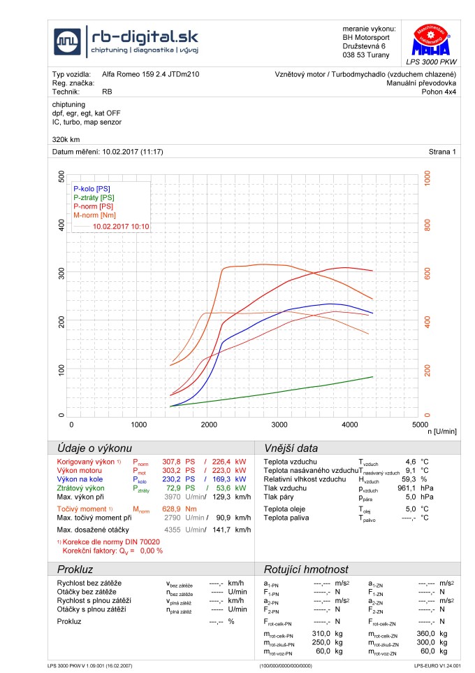 Chiptuning Alfa Romeo 159 2,4JTDm 20V 210PS úprava na 308PS