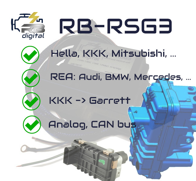 Riadiaca jednotka dokáže pracovať s el. regulátormi rôznych výrobcov (Hella, Borgwarner-KKK, Mitsubishi,...). Najčastejšie používanými typmi sú regulátory REA od výrobcu Hella.